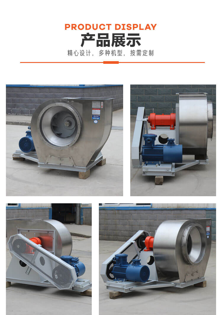 不銹鋼離心風機:不銹鋼材質具有較強的抗腐蝕性能,適用于對腐蝕要求不是特別嚴格的環(huán)境。