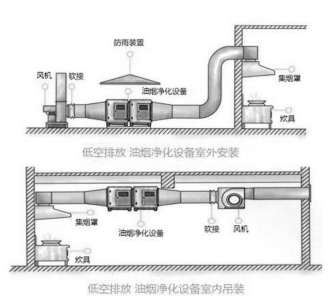 排煙管的設(shè)計(jì)和安裝不科學(xué),常常造成廚房排煙系統(tǒng)不順暢,直接影響到油煙凈化器的使用。