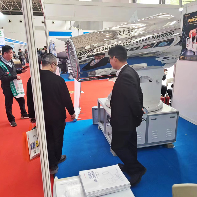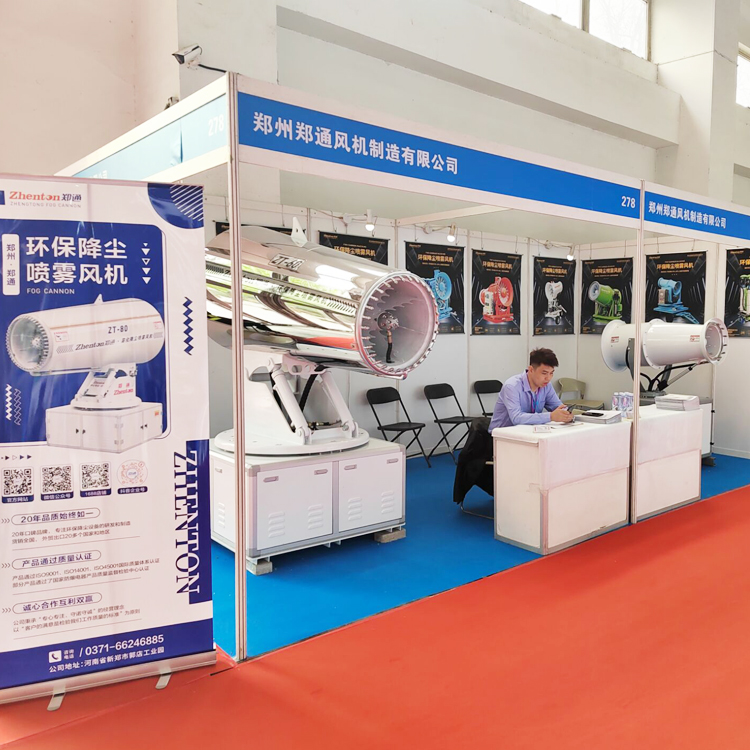 本地展會(huì)鄭通出展了霧炮機(jī)系列:移動(dòng)式30米霧炮機(jī)和錐體式60米霧炮機(jī)。