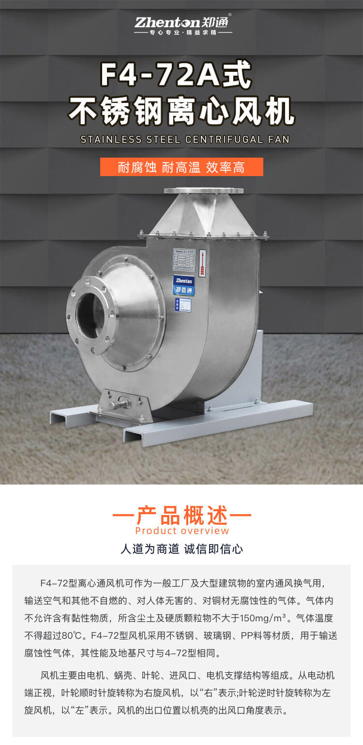 不得超過80°C。F4-72型風機采用不銹鋼、玻璃鋼、PP料等材質,用于輸送