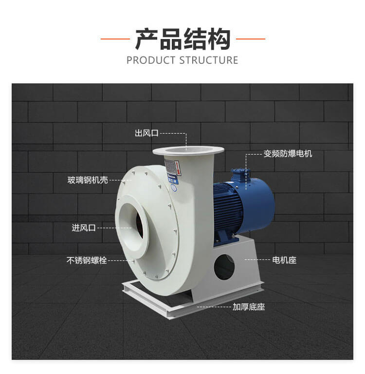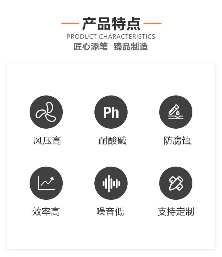 適用于化工、紡織、電鍍、實驗室等場所排送含有一定濃度的酸、堿、鹽等腐蝕性氣體,也可以作為一般工廠的建筑物通風換氣用。