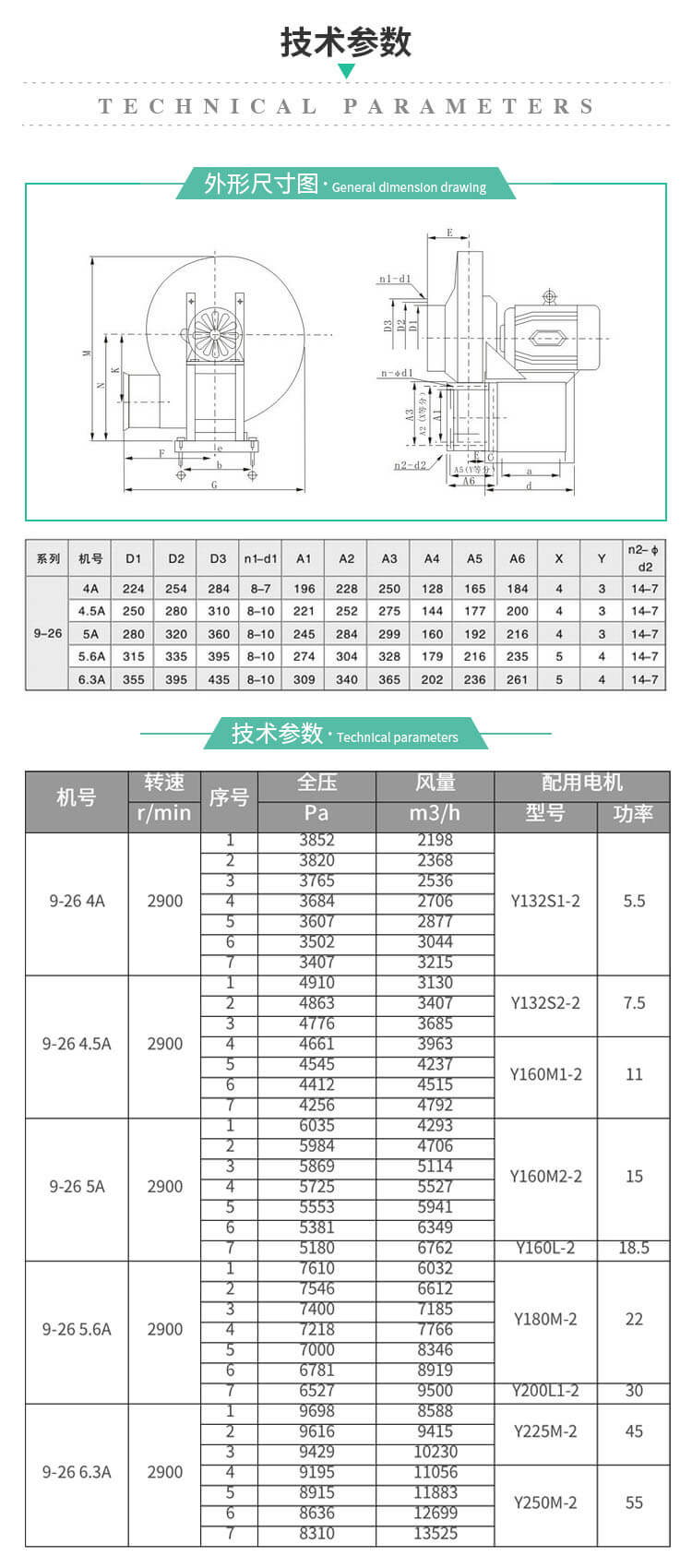 9-26型高壓離心通風(fēng)機(jī)一般用于鍛冶爐及高壓強(qiáng)制通風(fēng), 并可廣泛用于輸送物料,以及輸送不自燃、不含黏性物質(zhì)之氣 體。介質(zhì)中所含塵土及硬質(zhì)顆粒不大于150mg/m3。主要由葉 輪、機(jī)殼、進(jìn)風(fēng)口、傳動部分組成。