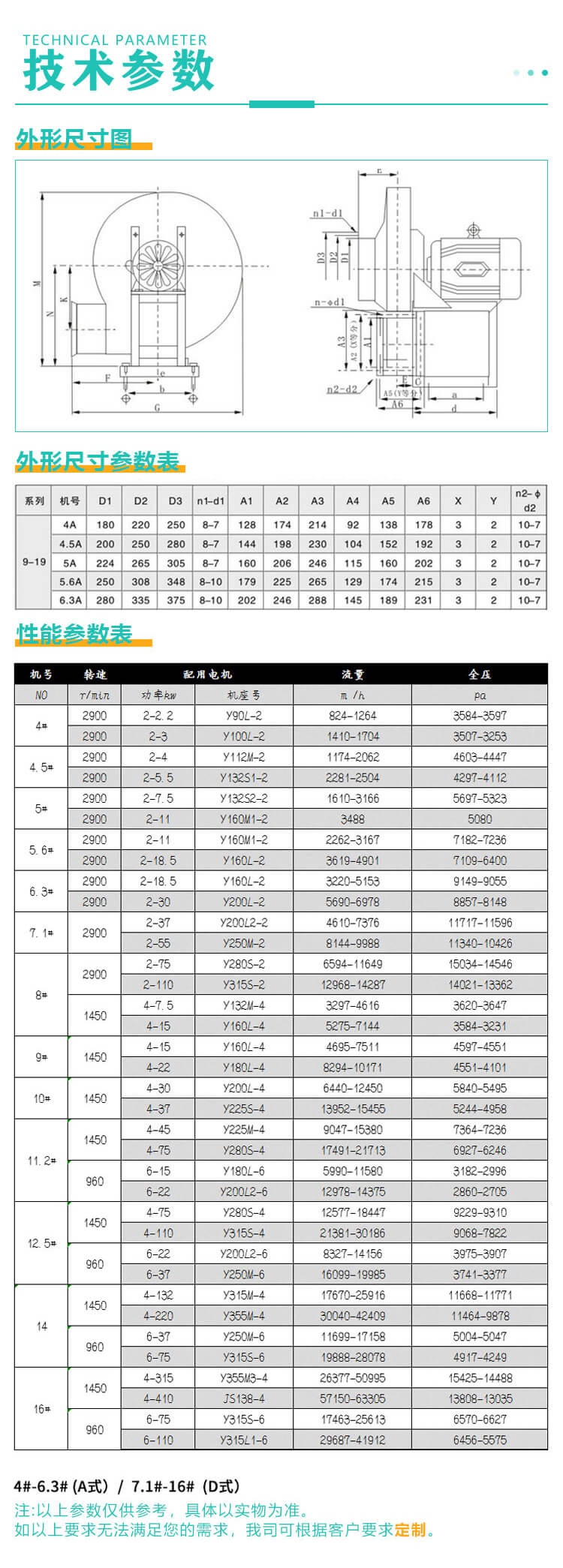 9-19型風(fēng)機(jī)屬于小流量、高風(fēng)壓,效率高、結(jié)構(gòu)緊湊,運(yùn)行可靠等優(yōu)點(diǎn)。