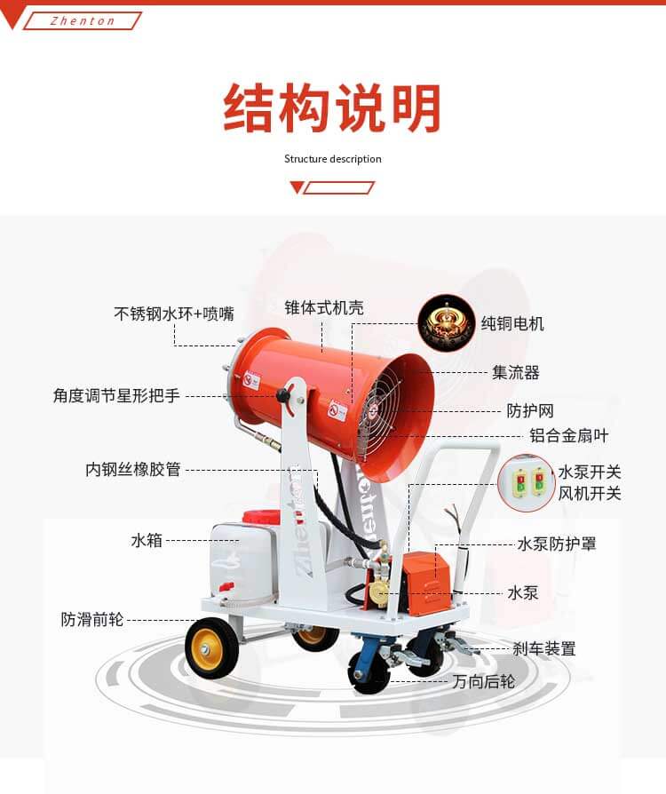 手推移動(dòng)式噴霧風(fēng)機(jī)降塵速度快、風(fēng)量大、機(jī)結(jié)構(gòu)緊湊、布局合理、移動(dòng)靈活、構(gòu)造簡(jiǎn)單易維護(hù);