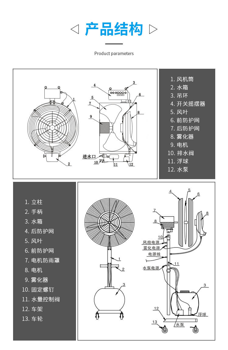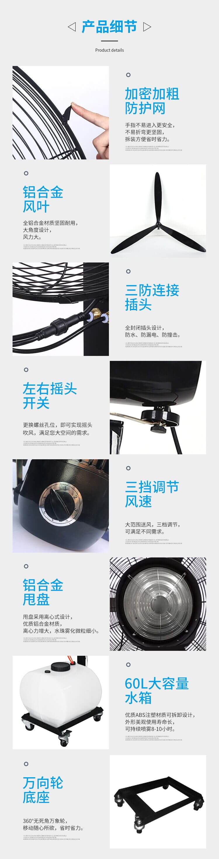 離心式霧化設(shè)計,無需噴嘴和水過濾裝置防水電氣設(shè)計,使用安全霧化大小可隨意調(diào)節(jié)、噪音低配有手推車,移動便捷。
