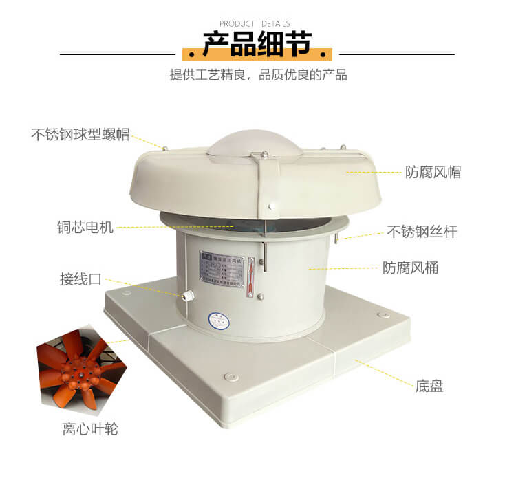 外殼及風(fēng)輪可根據(jù)不同的腐蝕性氣體而采用不同的材質(zhì),噪音低、重量輕、運(yùn)轉(zhuǎn)平穩(wěn)、效率高、防腐性能好。