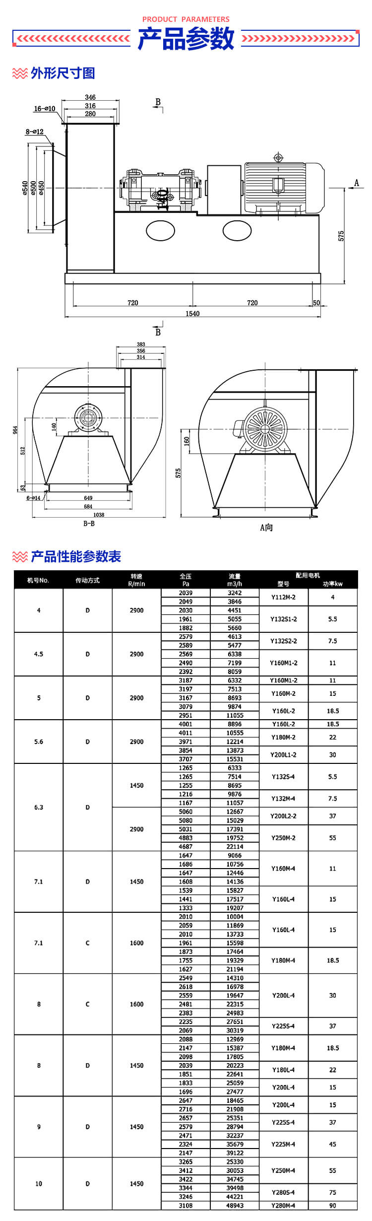 y8-39-D式離心風(fēng)機屬于高溫用途的高溫離心通風(fēng)機,又稱鍋爐引風(fēng)機,處理氣體介質(zhì)溫度不能超過280℃。風(fēng)壓大,結(jié)構(gòu)穩(wěn)固,運行平穩(wěn)。