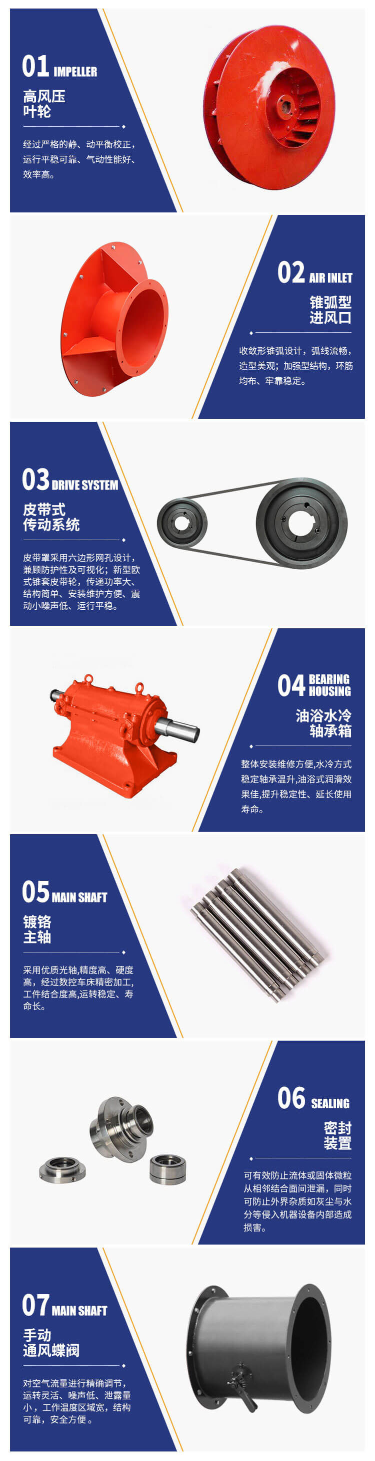 1、適用于燃用各種煤質(zhì) 并配有消煙除塵裝置的、 蒸發(fā)量0.5~ 10t/h的各 類工業(yè)鍋爐。 2、高溫烘烤設(shè)備的熱風(fēng) 循環(huán)風(fēng)機。 3、使用環(huán)境:氣體介質(zhì) 中不含腐蝕及易燃易爆 氣體,介質(zhì)中粉塵及硬 顆粒雜質(zhì)含量不超過 200mg/m3,長期運行 介質(zhì)溫度不超過250°C。