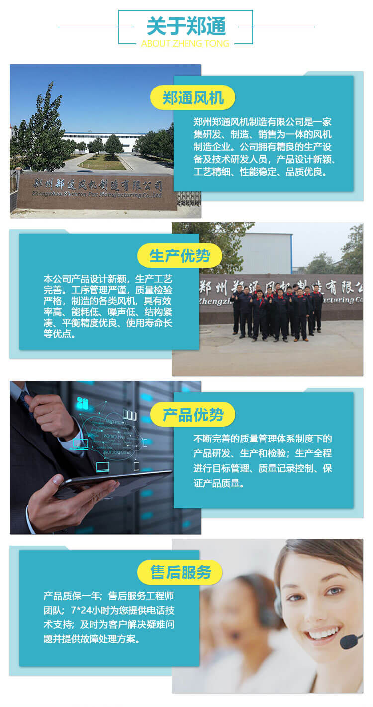 鄭州鄭通風(fēng)機(jī)制造有限公司是一家集研發(fā)、制造、銷(xiāo)售為一體的風(fēng)機(jī)專(zhuān)業(yè)制造企業(yè)。公司擁有精密的生產(chǎn)設(shè)備及專(zhuān)業(yè)的技術(shù)研發(fā)人員,產(chǎn)品設(shè)計(jì)新穎、工藝精細(xì)、性能穩(wěn)定、品質(zhì)優(yōu)良。