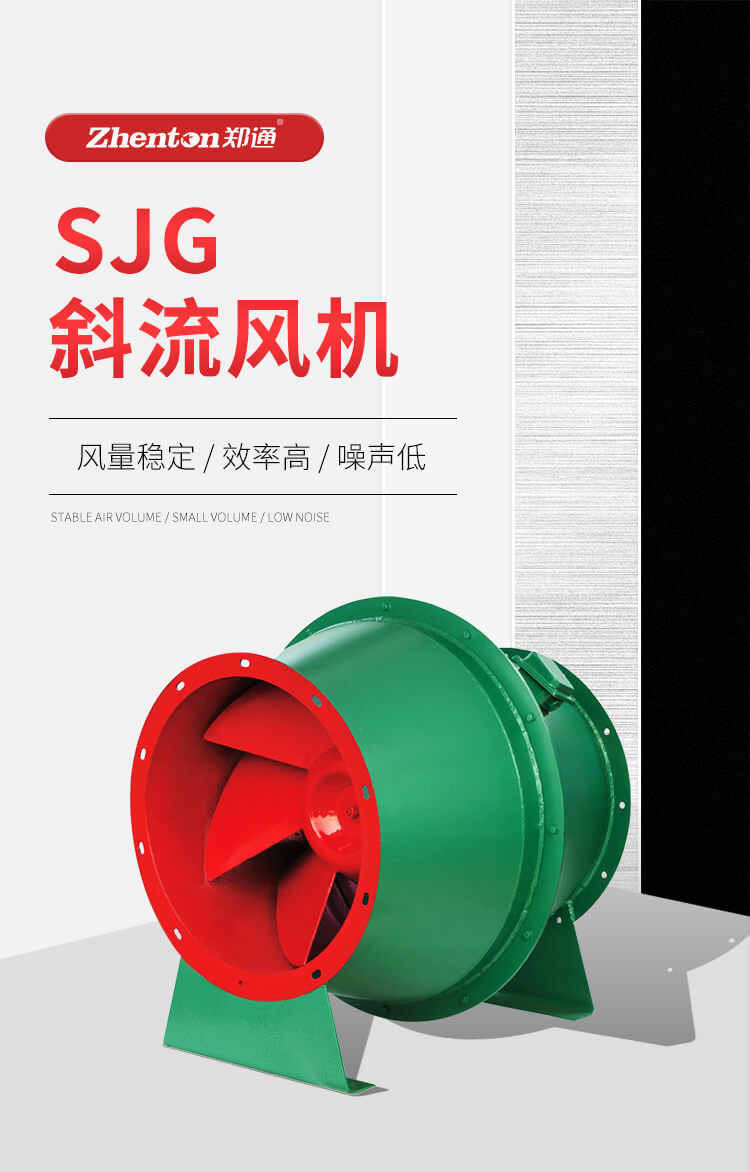 SJG斜流風(fēng)機(jī)廣泛應(yīng)用于工業(yè)及民用建筑等各種通風(fēng)換氣場(chǎng)所,特別使用于通風(fēng)與空調(diào)管道的加壓、送風(fēng)和排風(fēng)