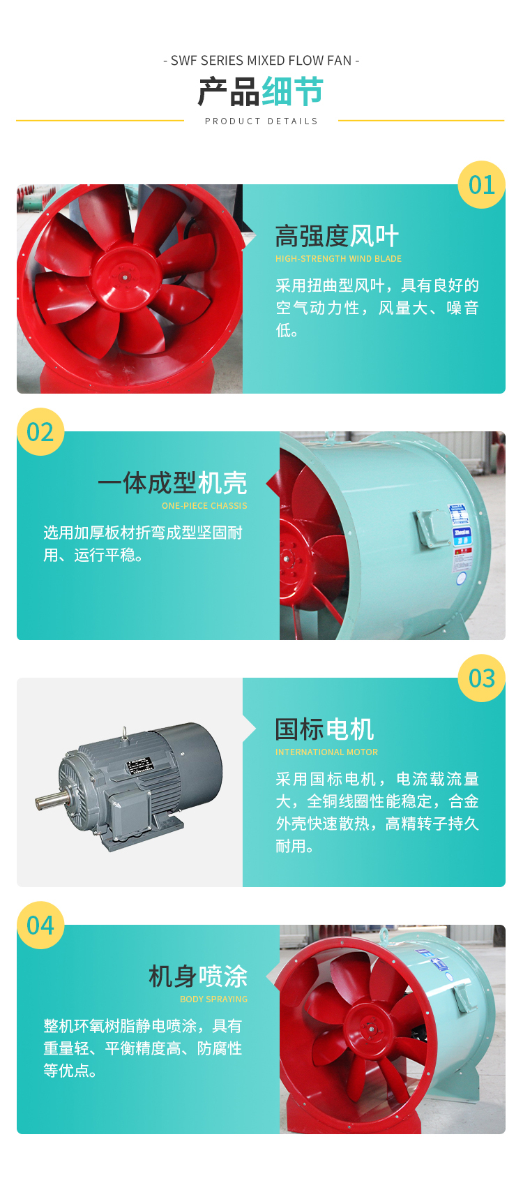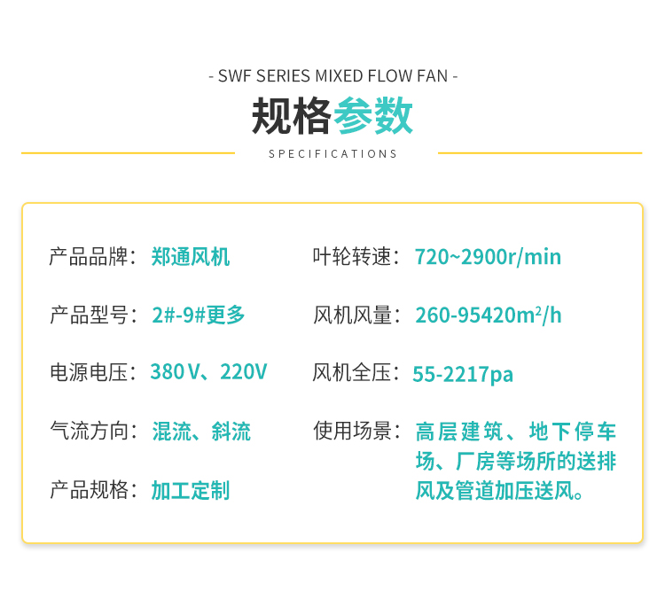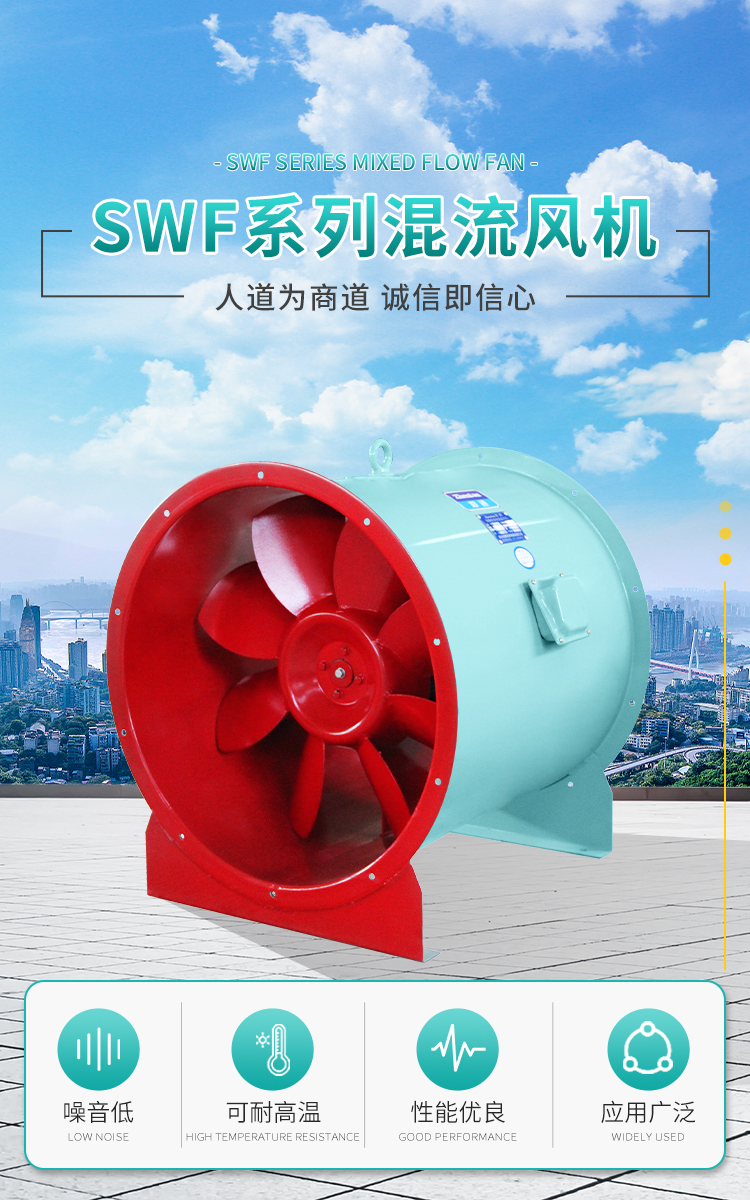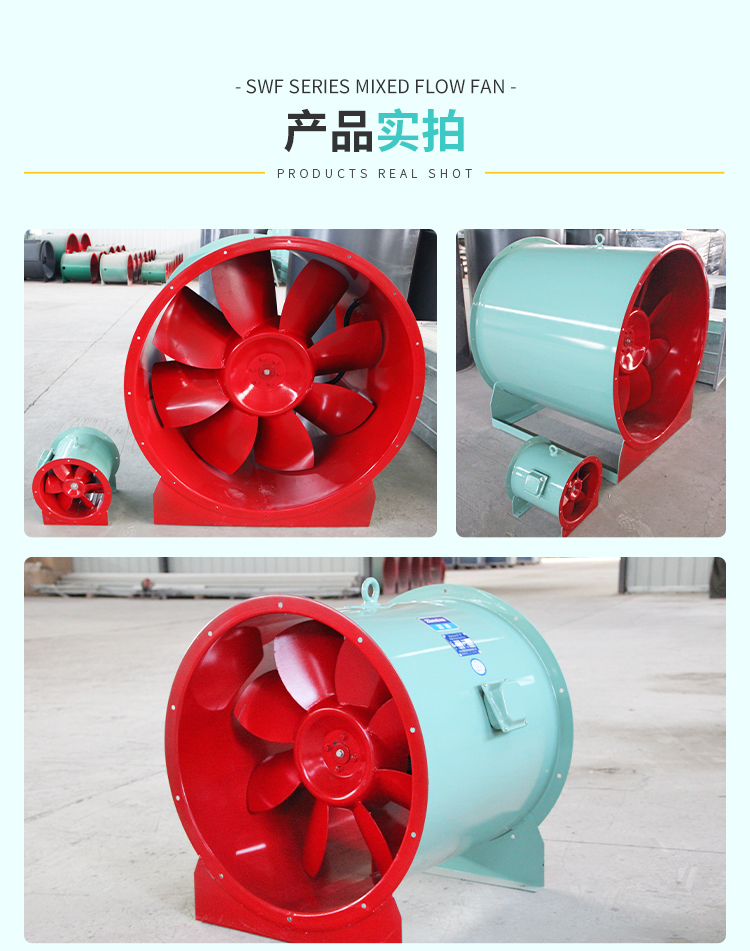 SWF型混流風機多用于冷凍、空調(diào)、紡織、船舶、民用建筑等空調(diào)工程通風換氣,普通材質(zhì)風機可輸送空氣和腐蝕性、不自燃的氣體。